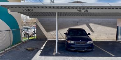 WE HAVE 2 COVERED VISITOR PARKING STALLS ON THE WEST SIDE OF THE OUR BUILDING. IF THEY'RE AVAILABLE YOU CAN PARK HERE.