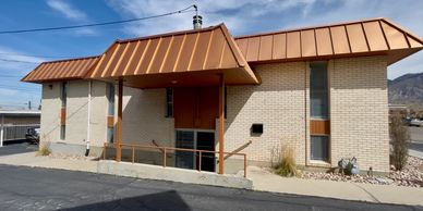 OUR ENTRANCE IS LOCATED ON THE SOUTH SIDE OF THIS BUILDING. WE ARE NUMBER 44. WE ACROSS THE STREET FROM THE STATE LIQUOR STORE AND THE SOUTH NEIGHBOR OF THE UNTITED STATES POST OFFICE.